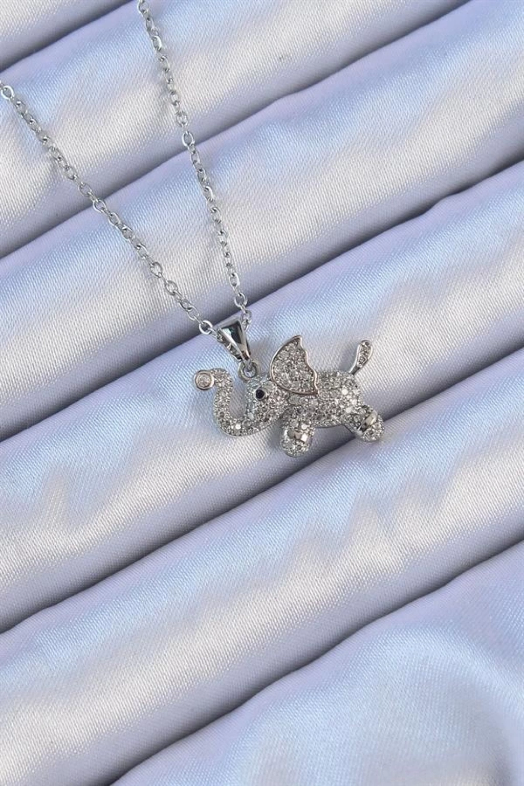 316L Çelik Zincir Gümüş Renk Zirkon Taşlı Fil Kolye