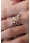 Gümüş Renk Yılan Figür Zirkon Taş Detay Kadın Yüzük