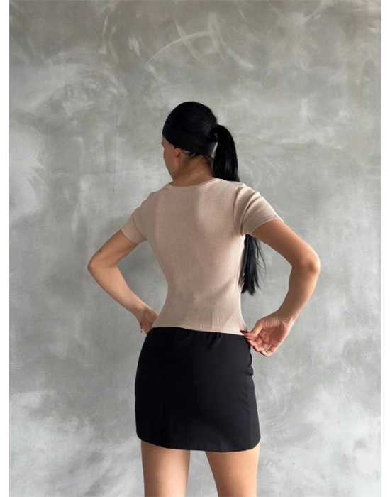 Kadın siyah bisiklet yaka gold düğmeli ottoman bluz s2310